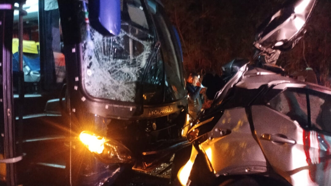 O veículo parou na contramão e foi atingido frontalmente por um ônibus que transportava estudantes para Piracicaba.
