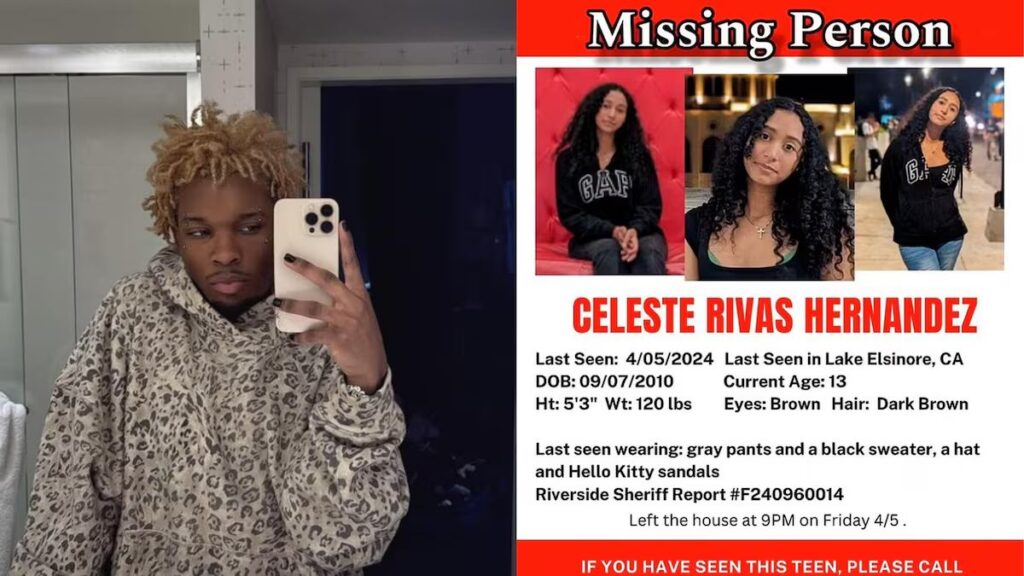 Registros que circulam nas redes sociais também mostram o cantor em Lake Elsinore, cidade onde Celeste vivia, antes do desaparecimento. Em uma das imagens, ele aparece ao lado de uma garota com características semelhantes às da adolescente, embora não haja confirmação oficial da identidade.