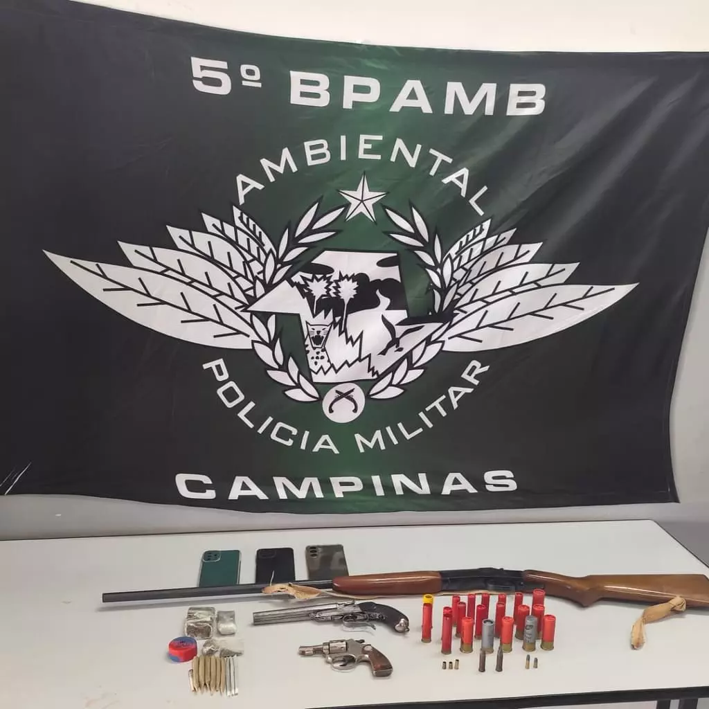 Uma operação da Polícia Militar Ambiental realizada neste sábado (23), resultou na apreensão de armas de fogo, entorpecentes e na constatação de crime ambiental em um rancho às margens do Rio Mogi Guaçu, no bairro Parque Roseira, em Mogi Guaçu (SP). A ação culminou na prisão em flagrante de um dos envolvidos, que permanece à disposição da Justiça.