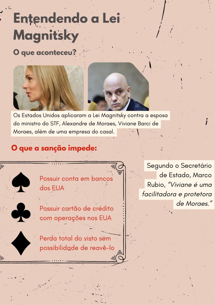 Segundo o secretário do Tesouro dos EUA Viviane Moraes oferece uma “rede de apoio financeiro” ao ministro já sancionado pela Lei Magnitsky.