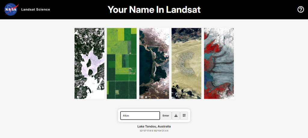 Na prática, o usuário digita o próprio nome e a ferramenta busca imagens de satélite de diferentes partes do planeta que lembram as letras informadas. Em segundos, o sistema monta uma espécie de “nome da Terra” com essas paisagens (veja abaixo). A Nasa é uma agência do governo dos Estados Unidos criada em 1958.