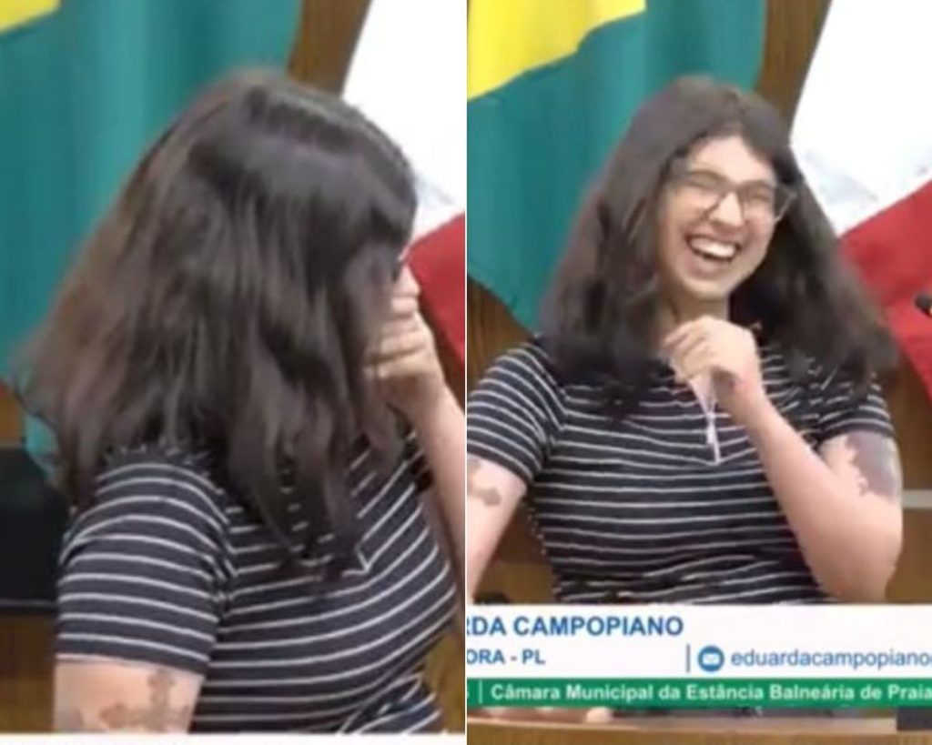 Uma sessão ordinária da Câmara Municipal de Praia Grande, na Baixada Santista, foi marcada por um momento inusitado que arrancou risadas de todos os presentes. Durante a fala da vereadora Eduarda Campopiano (PL), um som inesperado vindo da plateia surpreendeu o plenário.