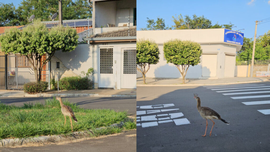 “Essa seriema, propriamente dita, é um casal, inclusive. Eles estão perambulando por vários lugares. Já foram para a Chácara Central, já foram para o Campos Verdes, já foram para o Monte das Oliveiras, já vieram perto da Avenida Ampelio Gazzetta, aqui no Centro. Então eles ficam perambulando pela cidade. Estão adaptadas à área urbana”, afirmou a bióloga.