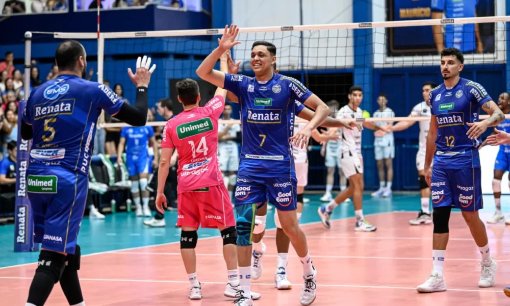 O Vôlei Renata sofreu, mas conseguiu vencer o Viapol/São José por 3 sets a 2 (parciais de 25/18, 22/25, 25/23, 19/25, 15/11) na noite desta terça-feira (7), em São José dos Campos, pelo primeiro jogo das semifinais do Campeonato Paulista Masculino de Vôlei 2025.